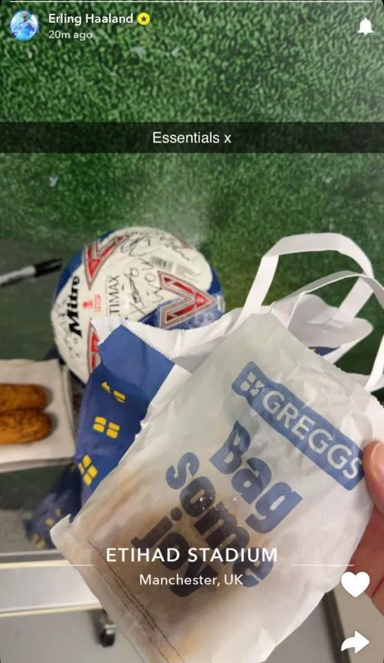 赛后,哈兰德还犒劳了自己一份格雷格斯(Greggs)外卖。他在快拍上分享了自己赛后餐食的照片,配文为:“必备品x。”